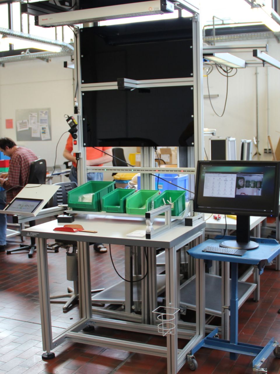 Das Montageassistenzsystem AMBOS unterstützt Mitarbeiter in Werkstätten für Menschen mit Behinderungen zum Beispiel bei Pack- und Kommissionierprozessen und hilft, Fehler im Prozess frühzeitig zu vermeiden. Dabei setzt AMBOS auf eine automatisierte Pick-by-Light Lösung, bei der automatisch erkannt wird, wenn ein Teil entnommen wurde. Dazu ist ein Einlernen des Teils nicht notwendig. Dies ist durch einen universell einsetzbaren Ansatz in der Entnahmeerkennung möglich. Durch den Wegfall des Einlernens, der Möglichkeit, das System universell einzusetzen und die günstigen Komponenten kann mit den Bauanleitungen auf dieser Website ein unvergleichbar günstiger Preis für das Montageassistenzsystem erreicht werden.